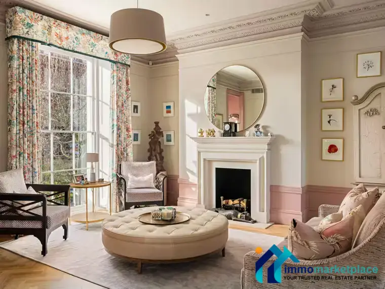 This exceptional white stucco end-of-terrace house is arranged over five floors and offers outstanding family and entertaining space in one of Kensington’s most sought-after locations. The raised ground floor is the heart of the home, with a magnificent double reception room flooded with natural light from both the east and west. High ceilings, wooden floors and windows on three sides create a wonderfully open and elegant space, while double French doors open onto the terrace, making it ideal for entertaining. The lower floors are perfectly designed for modern family living, featuring a generous open-plan kitchen and breakfast area, a family television room opening onto the courtyard garden, a study, guest WC, and additional guest or staff accommodation with kitchenette, utility room and steam room. The upper floors provide excellent bedroom accommodation, led by a principal suite with walk-in wardrobe and ensuite bathroom, alongside further ensuite bedrooms with built-in storage. Beautifully maintained throughout, the house blends classic English elegance with contemporary comforts, including air conditioning and underfloor heating in the kitchen and bathrooms. Outside, there is off-street parking for two cars, a rear patio garden and a first-floor terrace. Ideally located moments from High Street Kensington and a short walk from Holland Park, this is a superb family home filled with light, space and versatility.